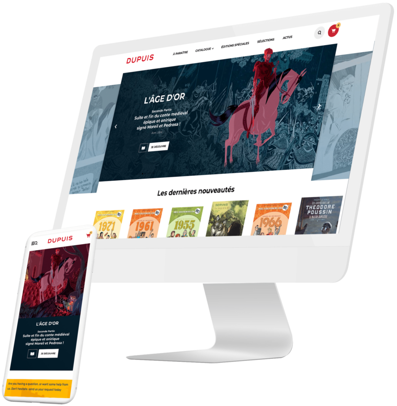 Cas Client Dans le cadre de la refonte de Dupuis.com, le célèbre éditeur de BD nous a sollicité pour assurer le développement Front-End du nouveau site. L’accent a été mis sur la performance avec une intégration HTML rigoureuse et optimisée pour le référencement, accompagnée qu’une grande dose de créativité favorisant l’immersion des visiteurs dans l’univers de la bande dessinée. L’éditeur de bandes dessinées belge, Dupuis, nous plonge depuis presque 100 ans dans des univers immersifs. De ce fait, outre un aspect technique exemplaire, le site devait refléter l’imagination et l’inventivité de Dupuis. Le site d’un éditeur de bande dessinée se doit d’offrir une expérience de navigation mémorable. Un développement front-end créatif était donc nécessaire pour proposer une expérience utilisateur ludique. De plus, pour une utilisation universelle, la plateforme devait être responsive pour s’adapter aux usages des milliers de visiteurs (mobile, tablette, PC…). Enfin, le site ayant une forte dimension e-commerce, les problématiques d’optimisation et le respect des bonnes pratiques HTML étaient au coeur de nos préoccupations pour ce projet. Pour l’intégration html, nous avons respecté l’exigence du client c’est-à-dire un code qui respecte les bonnes pratiques pour un référencement efficace. Afin de créer une expérience utilisateur immersive, nous avons mis l’accent sur une intégration HTML créative dans le développement front-end du site. Ce dernier est donc très interactif avec des animations donnant vie à l’univers de la BD. Le développement s’est donc naturellement axée sur le respect au pixel près du design fourni, avec un soucis constant des problématiques responsive pour une expérience universelle et ludique. A travers quelques études de cas découvrez en détail le spectre de nos compétences. Optimisation d’un e-shop Magento Création d’un site de tourisme d’affaire Refonte du site d’un institut culturel Création du site d’un industriel Développement front-end