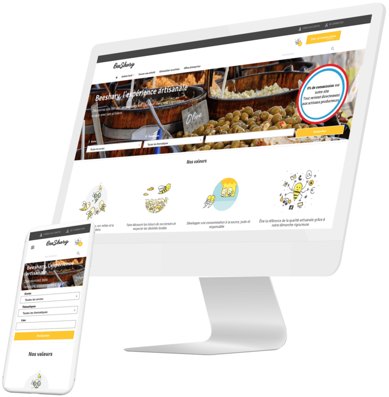 Cas Client La marketplace des artisans et petit producteurs locaux BeeShary nous a confié l’optimisation de leur marketplace basée sur Prestashop. Techniquement complexe, cette plateforme nécessitait des optimisations et améliorations afin d’améliorer l’expérience des clients ainsi que des artisans. BeeShary est une marketplace qui nous fait découvrir les trésors de nos régions à travers les mains des artisans et producteurs locaux. Cette marketplace permet aux artisans-producteurs locaux de valoriser leurs produits tout en répondant aux préoccupations des consommateurs : transparence, proximité, qualité et traçabilité. De ce fait, il est important d’avoir une marketplace aboutie techniquement qui répond aux besoins des vendeurs et des consommateurs. BeeShary a pour vocation de donner envie aux consommateurs de tester toutes sortes de produits régionaux. En partant de ce postulat, les artisans-producteur ont besoin d’outils performants pour rendre attrayants leurs produits et les vendre au sein de leur boutique. Le site doit être ergonomique pour permettre facilement la mise en avant des produits. Un système de livraison efficace, de retrait en boutique pour permettre aux commerçants de vendre leurs produits même en période de pandémie. Puis bien sûr l’optimisation de la performance avec la correction de bug pour éviter de perdre des clients. En résumé, un site au point techniquement. BeeShary est une marketplace créée sous Prestashop et nécessitant donc une maintenance régulière. Pour valoriser leurs marchandises, les artisans-producteurs ont besoin d’outils pour mettre en valeur leurs produits. Nous avons donc amélioré l’ergonomie des pages de présentation produit en permettant par exemple de redimensionner facilement les photos pour qu’elles se montrent toujours sous le meilleur angle possible. Lors la pandémie, il est également apparu essentiel de permettre aux artisans-producteurs d’avoir une certaine flexibilité sur leur distribution. C’est pourquoi, nous avons implémenté un système de click and collect qui autorise le retrait en boutique. On peut ainsi bénéficier des fonctionnalités de la marketplace, tout en gardant une liberté de choix pour les consommateurs et les vendeurs. Enfin, un site web avec une marketplace se doit d’être performant pour empêcher les bugs et ainsi éviter de perdre des clients dans le tunnel de vente. Nous avons donc optimisé et corrigé certains bugs bloquants. Une maintenance est toujours nécessaire pour garder un niveau de performance optimal dans le cadre d’une plateforme eCommerce. A travers quelques études de cas découvrez en détail le spectre de nos compétences. Optimisation d’un e-shop Magento Création d’un site de tourisme d’affaire Refonte du site d’un institut culturel Création du site d’un industriel Maintenance d’une marketplace